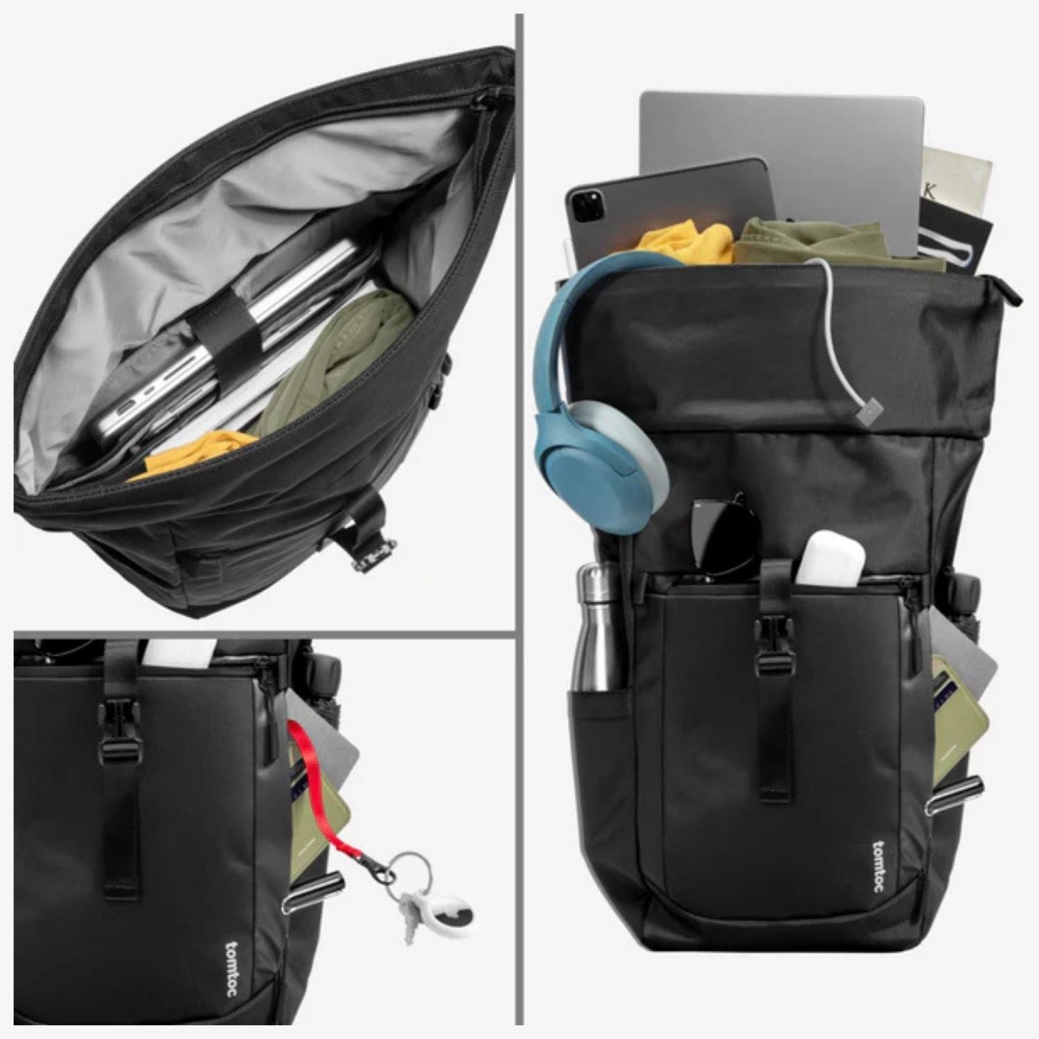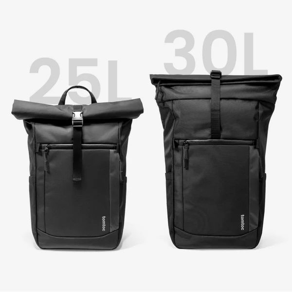 - Diseño enrollable ajustable que permite personalizar la capacidad, expandiéndose de 25L a 30L, ideal para el uso diario o los viajes.